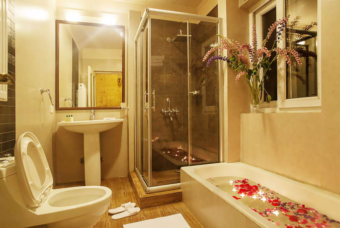 LUXURY SUITES(Room Size: 600 sqft) - The Nedous luxury suites boast to be one of the finest suites in Gulmarg, all centrally heated keeping your living space warm & cozy. It consists of a large living room, Bedroom, a dressing room and a large modern bathroom. Our luxury suites have the Gulmarg golf course view from the balcony and from your bathroom the Himalayan mountain view for your pleasure. The room have a personal butler service to cater to all your concerns, Satellite Television & High speed WiFi connectivity.We guarantee that it will be a stay you & your family will never forget.