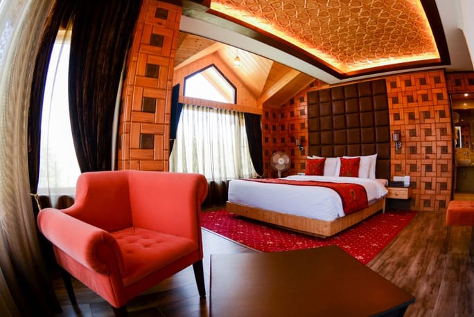 SUITE BALCONY - Nestled in opulent settings, our suites are adorned with an exclusive living room, bedroom and an enclosed balcony. These expansive suites offer everything that a travel connoisseur yearns, ranging from a spectacular view of the whole Gulmarg valley to the state-of-the-art technology. Luxury, comfort and design along with pure and distinguished elegance come together perfectly in these suites.