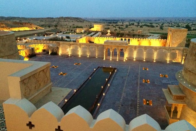 Thar Haveli - The Thar Haveli at Suryagarh, Jaisalmer, evokes a profound nostalgia. Perfectly appointed rooms are equipped with up-to-date modern conveniences and look out onto wide sweeping vistas of an unmatchable scrub desert. The views offer serenity and tranquillity as they look out onto a vastness of landscape that meanders infinitely. Though rooted in the present day with limpid azure infinity pools and immaculate butler service the very air of these sandstone edifices suggest the purity and grace of a venerable era.