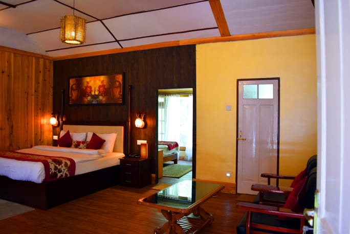 Family Room - The Family Rooms at Summit Barsana Resort & Spa, Kalimpong, are excellent rooms with a welcoming ambience. These rooms offer a wide set of amenities including high-speed Wi-Fi, television with an active satellite connection, 24-hour room service, 24-hour in-room dining, direct dialling, tea & coffee maker and premium toiletries. Book your rooms now to enjoy a splendid holiday at one of the top hotels in Kalimpong.