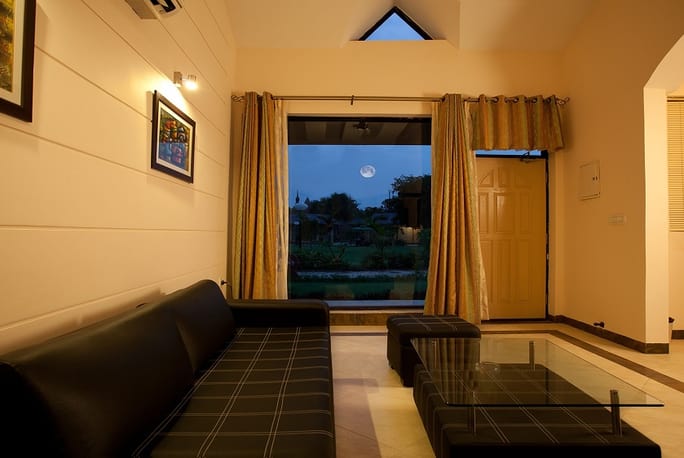 Luxury Cottages - An escapade to break free from the monotony The 1275 square feet ornate cottages have been conceptualized to revolutionize the essence of your living. While each cottage opens into its mini private tastefully landscaped green space, the glass façade of the fourth wall ensures a unique blend of nature and grandeur. The two spacious yet cozy bedrooms along with the living room bring out the best of nature -come and indulge yourself in the warmth of the morning sun, ponder all through the noon, and soothe your nerves as the evening breeze gently caresses you. The serenity will be a bliss to the nature enthusiasts while modern amenities will ensure a hassle-free stay for you.