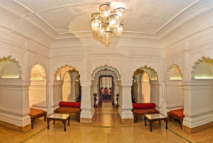 Raja Amar Singh - This suite with a garden-view verandah is situated on the ground floor level. A spacious room with high ceilings, it has a fireplace and two single beds.