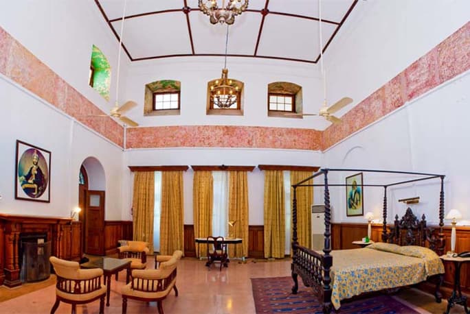 Raja Sardul Singh - This suite with a garden-view verandah is situated on the ground floor level. A spacious room with high ceilings and an unusual chandelier, it is done up in lively, yellow interiors.