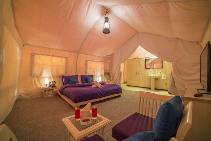 Camp - Fully insulated multiple layered tents , Panoramic view of mountains and glaciers , Raised wooden bases , Comfortable bedding and cotton linens , Dressing table & Make-up table , Private in-room bathroom with , hot water shower , 24 hour room service , Private veranda & sun beds , Satellite television , Bathroom amenities , Electric tea kettle , Live BBQ , Music of your choice , Sheesha lounge , Outdoor activities - Trekking , Rafting, Sightseeing, Trout fishing Bonfire.